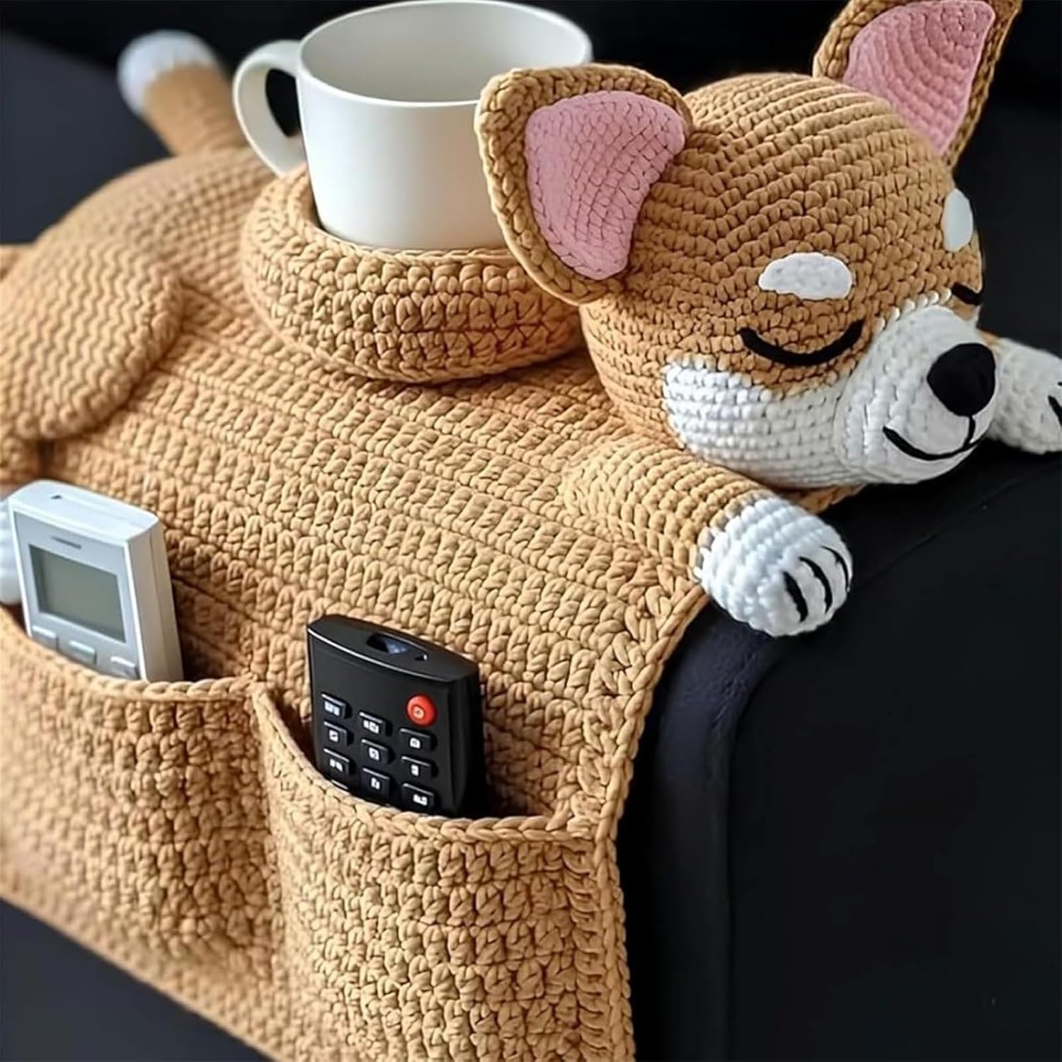 Crochet Dog Sofa Organizer, Handmade Crochet Dog Armchair Organizer, Cute Design, for Holding Remotes, Phone, Treats, Drinks, Cup, Living Room Bedroom Dorm